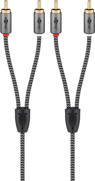 The Goobay Plus series comes in a slim, elegant metal design in Sharkskin Grey. The stereo RCA cable is perfect for multiple purposes - whether on a subwoofer, Blu-ray player, mixing console or hi-fi system. The high-quality, robust plugs are also suitable for frequent connecting and disconnecting.