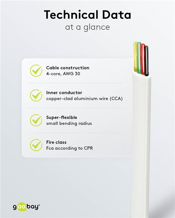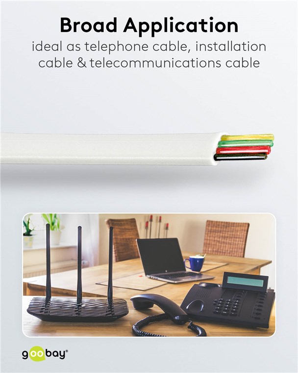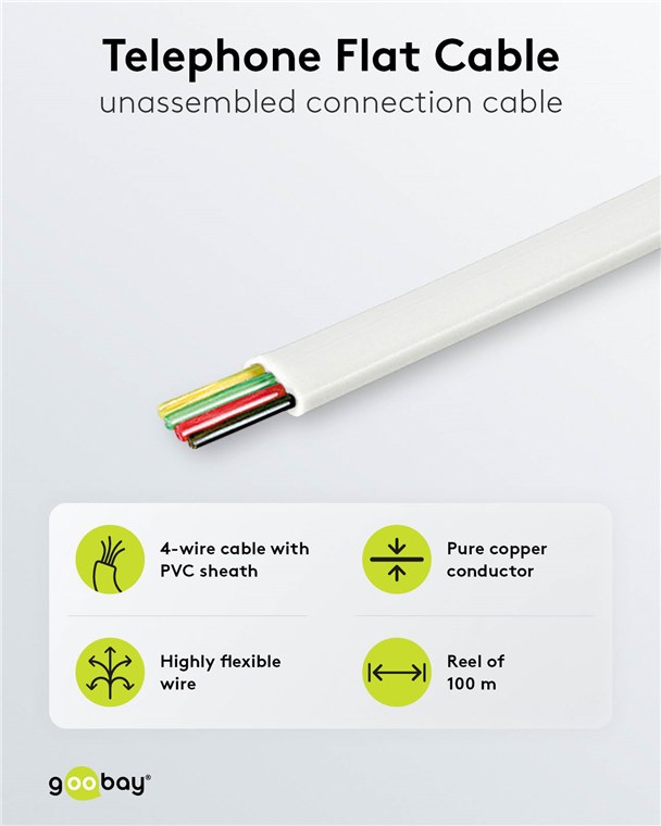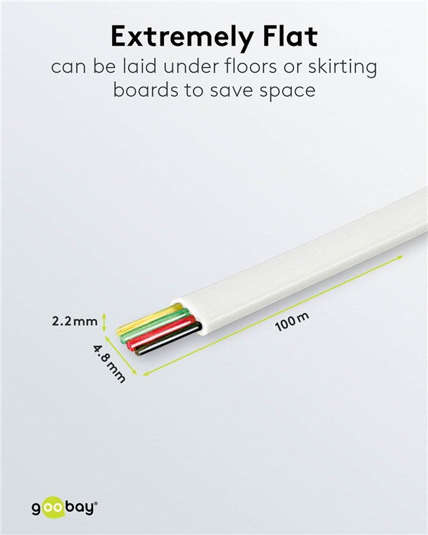 - Extremely flat phone cable with low bending radius and high flexibility