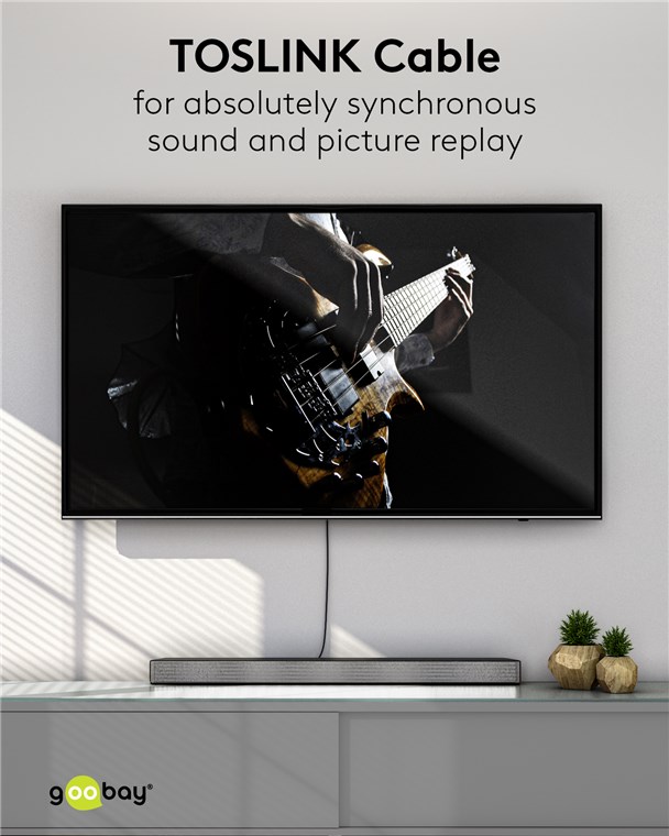 - TOSLINK cable for audio transmission from TVs, game consoles or Blu-ray players to hi-fi equipment such as a SoundBar, amplifier or stereo system