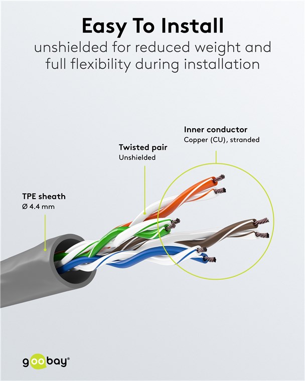 - Simply connected: Unshielded LAN cable with 2x RJ45 plugs for connecting network components at home, in the office, in the server cabinet, etc.