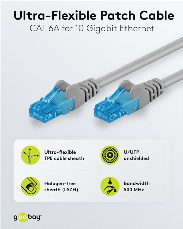 Ultra-Flexible CAT 6A Patch Cable U/UTP, grey