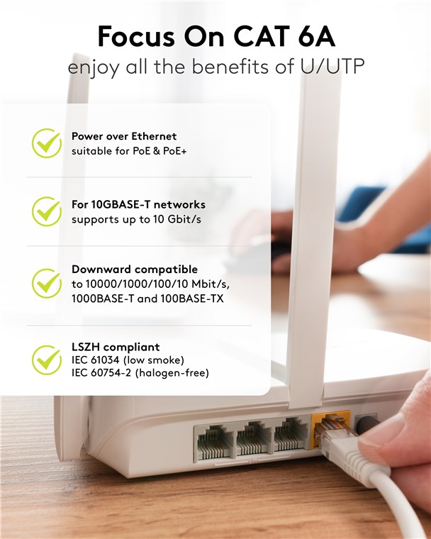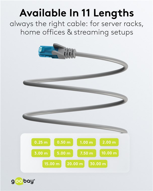A CATegory of their own: With their soft TPE sheath, these CAT cables are significantly more flexible than conventional cables with PVC sheathing – for improved handling and a super-soft feel. Pull the plug on your old PVC cable and switch to TPE – in your mobile office, server rack or streaming setup.
