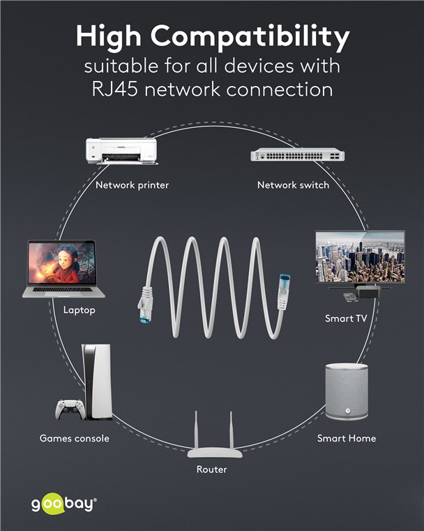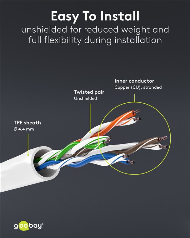 - Simply connected: Unshielded LAN cable with 2x RJ45 plugs for connecting network components at home, in the office, in the server cabinet, etc.