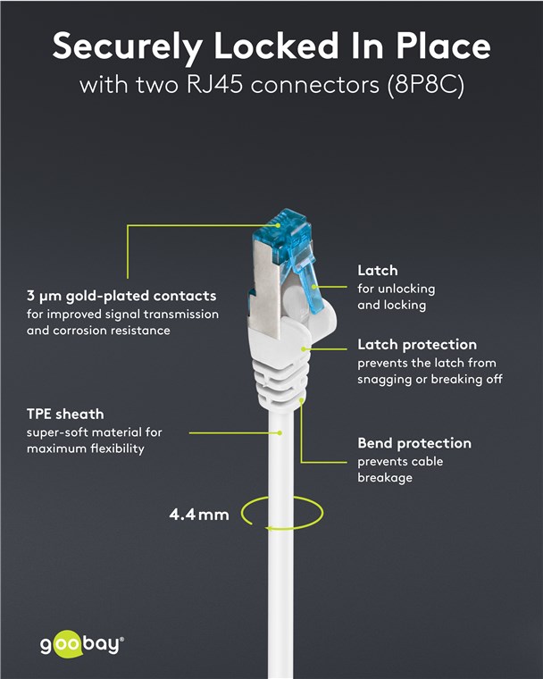 - Securely locked in place: The latch protection on the RJ45 connector prevents the latch from snagging or breaking off