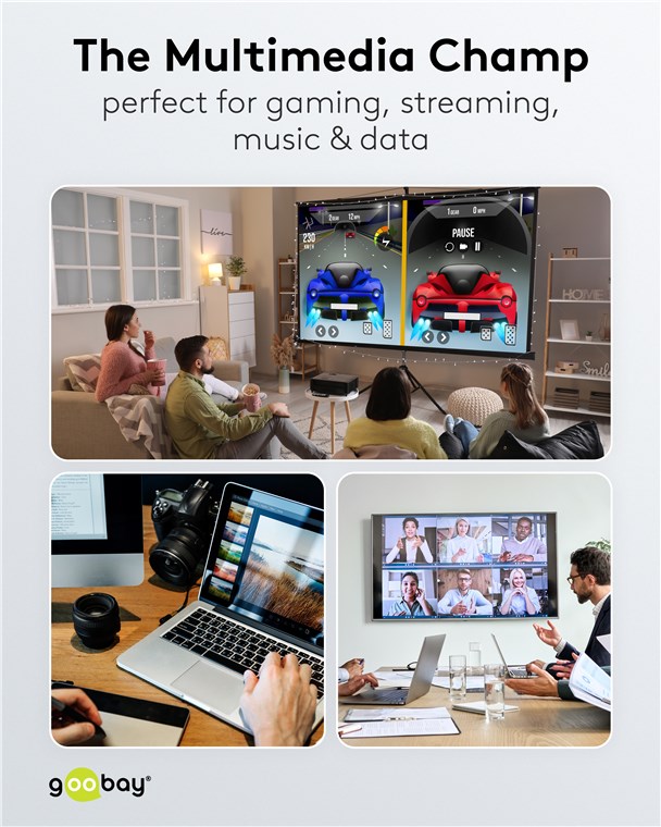 • Ideally suited for audio and video transmission between TV/monitor and projectors, game consoles (e.g. PlayStation 5, Xbox) or streaming receivers (e.g. Amazon Fire TV, Apple TV)