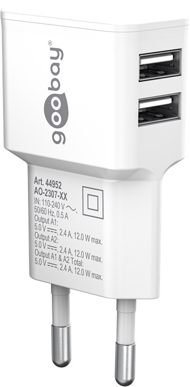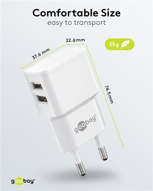- With two ports, the USB charger plug is the handy charging solution for up to two devices simultaneously