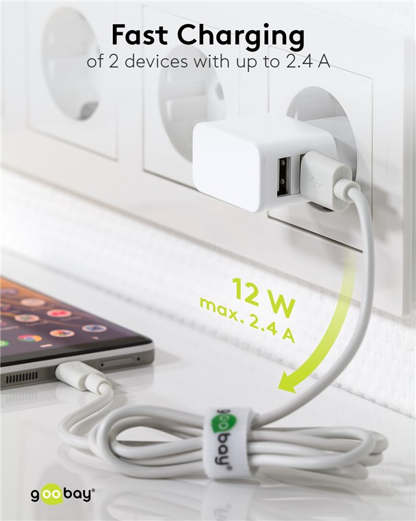 - With 12 W of power, the charging adapter is specially designed for small devices such as smartphones, smartwatches or Bluetooth headphones