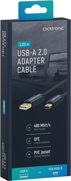 - USB A to USB mini B cable with 99.9 % oxygen-free copper conductor and 2-fold shielding for optimum transmission speed