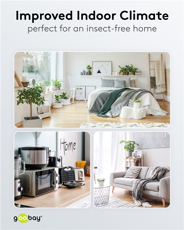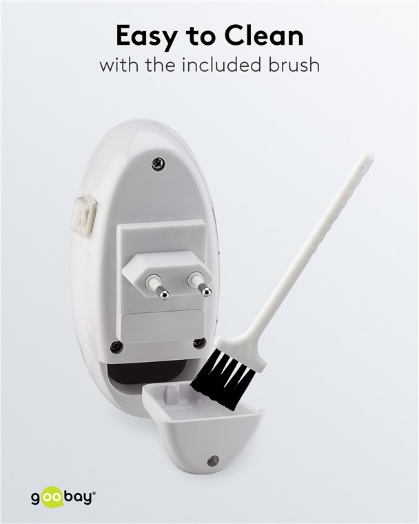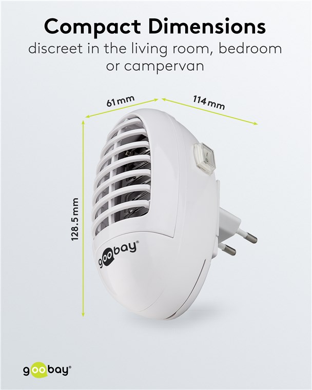 The whisper-quiet fly catcher: The UV insect trap frees the home simply and effectively from mosquitoes, fruit flies, moths and other flying insects – without any harmful chemicals or disturbing noises. With its compact format, the plug is the discreet solution in the living room, bedroom, kitchen or even when travelling in a camper van.