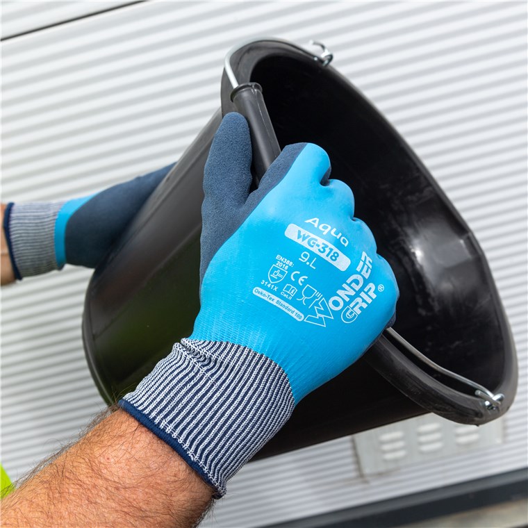 The WG-318 Aqua is a double fully coated latex glove with a 13 gauge nylon lining. Thanks to Wonder Grip® Technology™, the coating provides unparalleled grip and strength in dry or wet environments. The WG-318 Aqua is 100% waterproof and keeps the user's hands dry and comfortable. In terms of grip and flexibility, it is our preferred glove for wet environments.