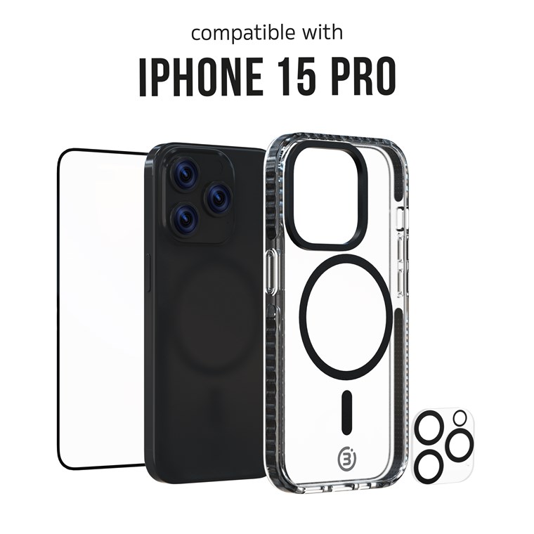 coque de téléphone, protection d'écran, protection de caméra et applicateur sans stress, compatible avec Apple iPhone 15 Pro, transparent