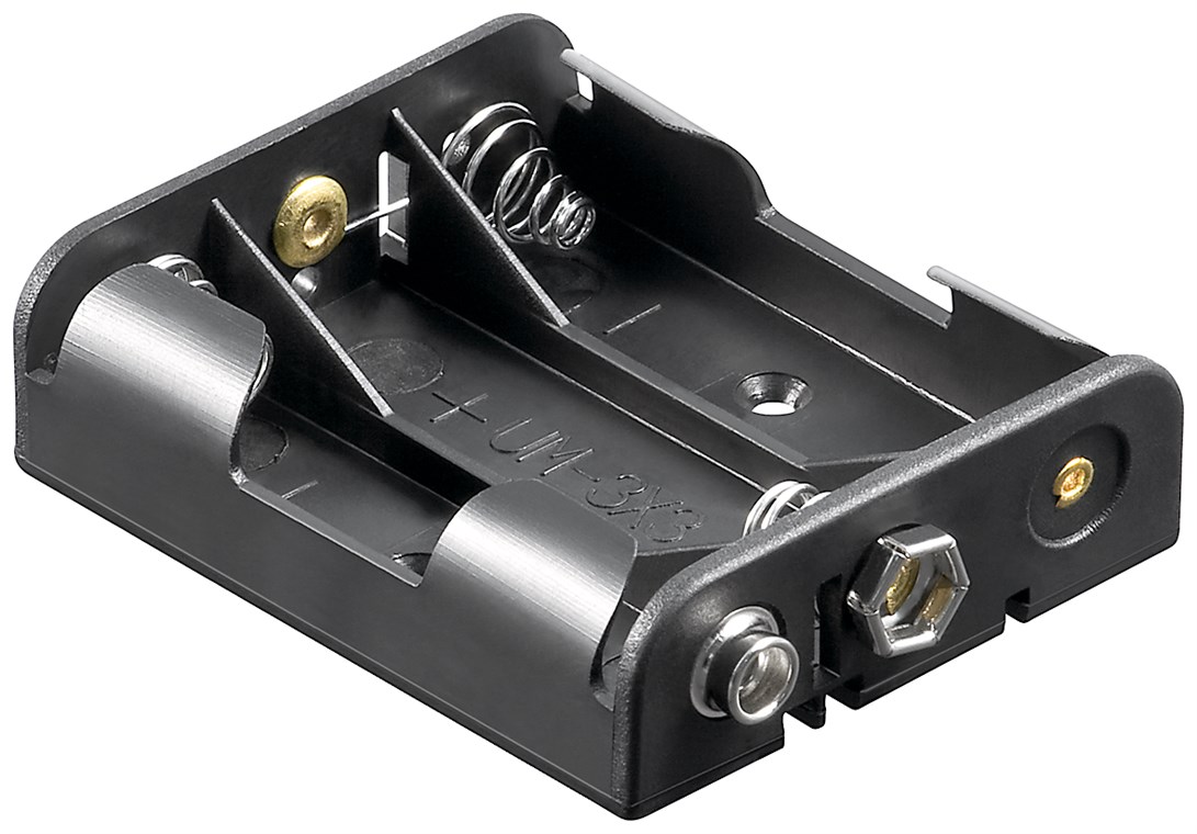 - Le boîtier ouvert en plastique noir peut contenir 3 piles AA.