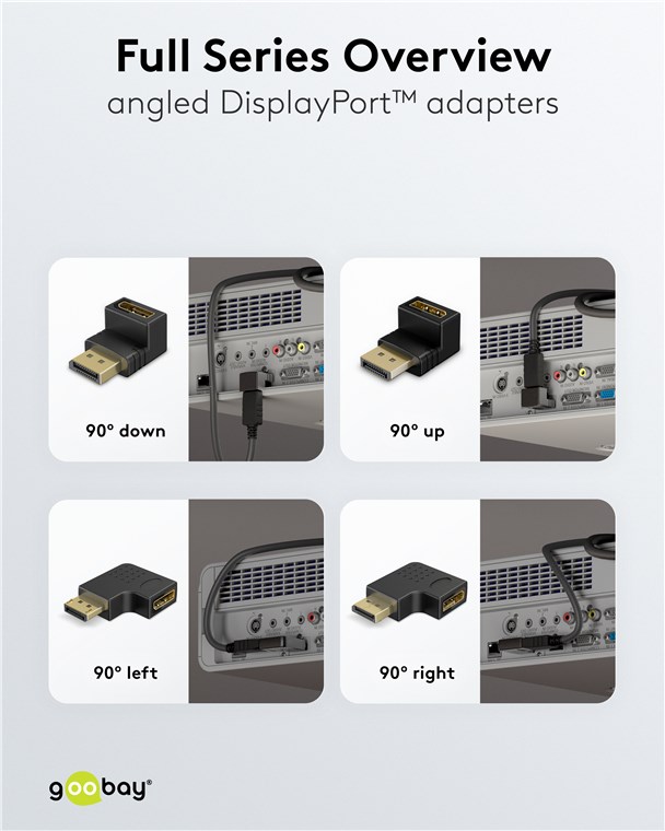 • L'adaptateur DisplayPort™ transmet des signaux vidéo haute résolution et des signaux audio HD, par ex. d'un ordinateur ou d'un ordinateur portable vers un écran ou un projecteur.