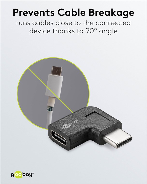 La fiche de l'adaptateur coude le câble USB-C™ vers la gauche ou vers la droite et le guide étroitement le long de l'appareil afin d'éviter efficacement qu'il ne se plie ou ne se rompe