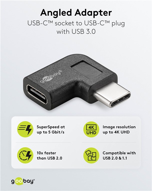 L'adaptateur USB permet une connexion coudée latéralement, même dans un espace réduit, par exemple sur des prises d'appareils à l'arrière