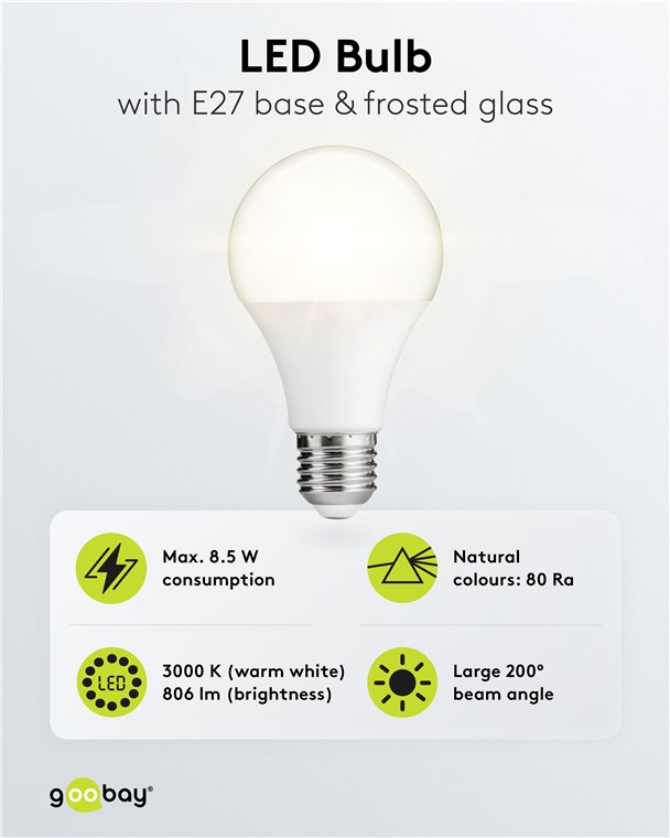 • Lampe LED de Goobay avec un angle de rayonnement de 200° et un culot E27