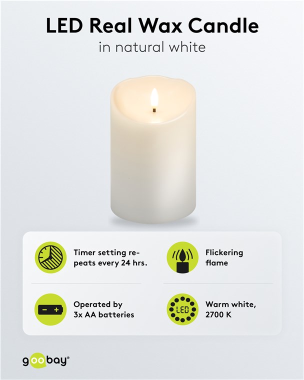 Bougie LED Blanche en Cire Véritable, blanc, 10 x 15 cm