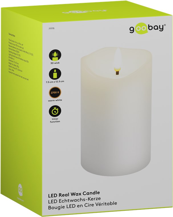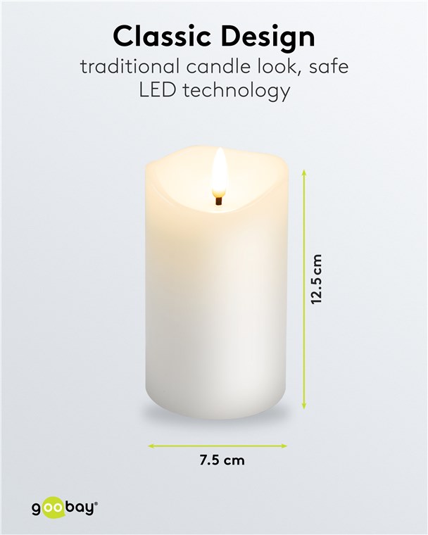 Bougie LED en Cire Véritable, blanc, 7,5 x 12,5 cm
