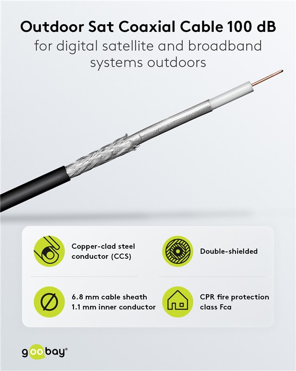 Câble Coaxial SAT 100 dB Outdoor, Double Blindage, CCS