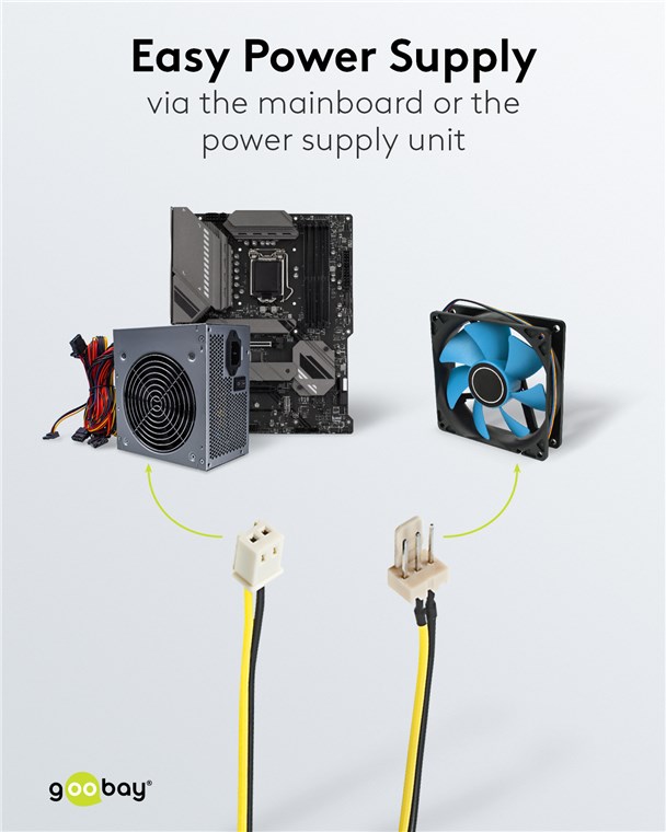 • Rallonge de câble pour le raccordement électrique du ventilateur de PC aux blocs d'alimentation, cartes mères, processeurs (CPU) et cartes graphiques