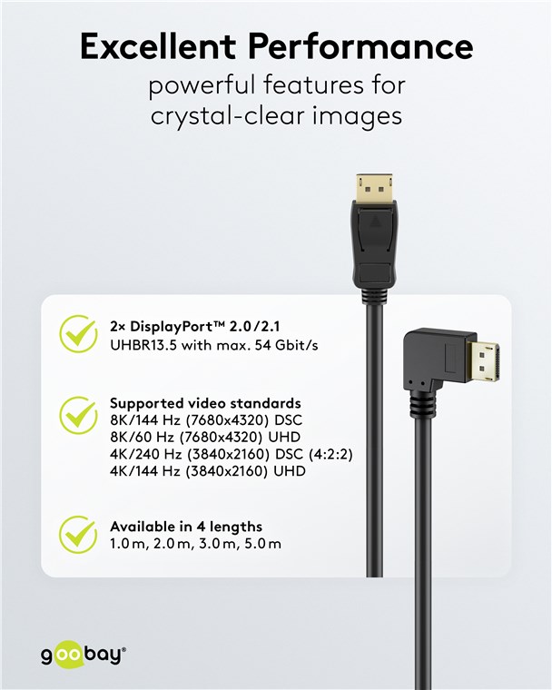Câble DisplayPort™ 2.0/2.1 incliné