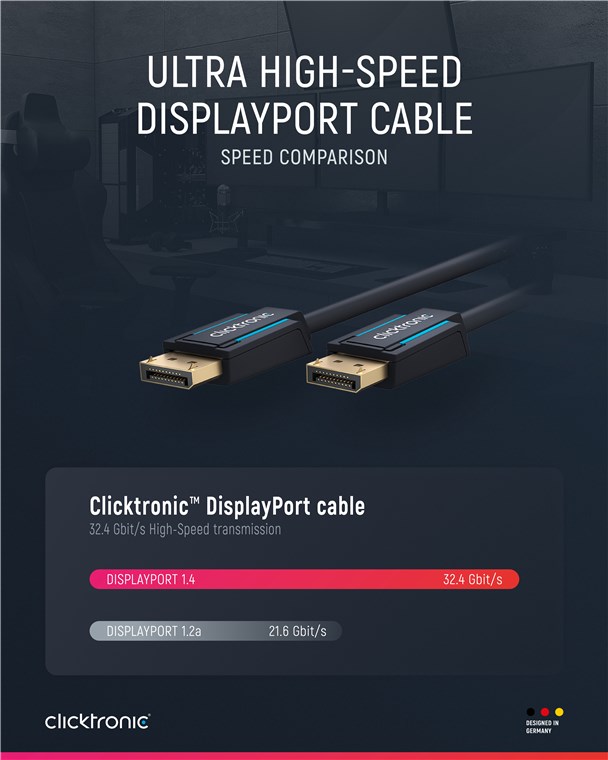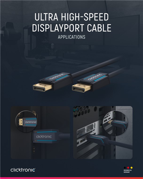 • Le câble Clicktronic 8K est compatible G-Sync et FreeSync™ pour un gain de vitesse dans les jeux et une transmission fluide des signaux audio et vidéo jusqu'à 32,4 Gbit/s.