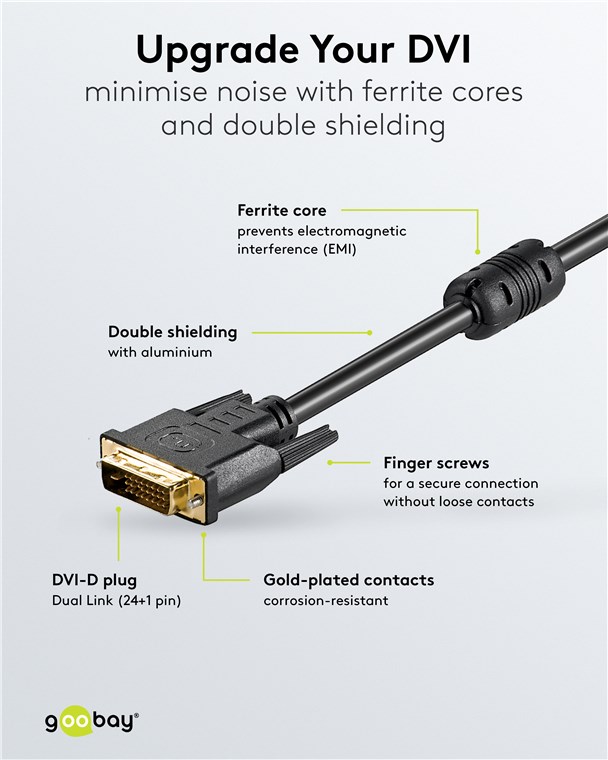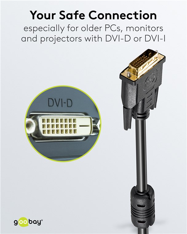 - Goobay câble DVI-D Dual Link (24 + 1 pins) pour la transmission numérique d'images de PC à des appareils tels que moniteur ou projecteur.