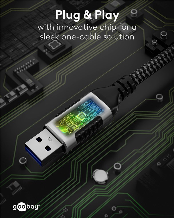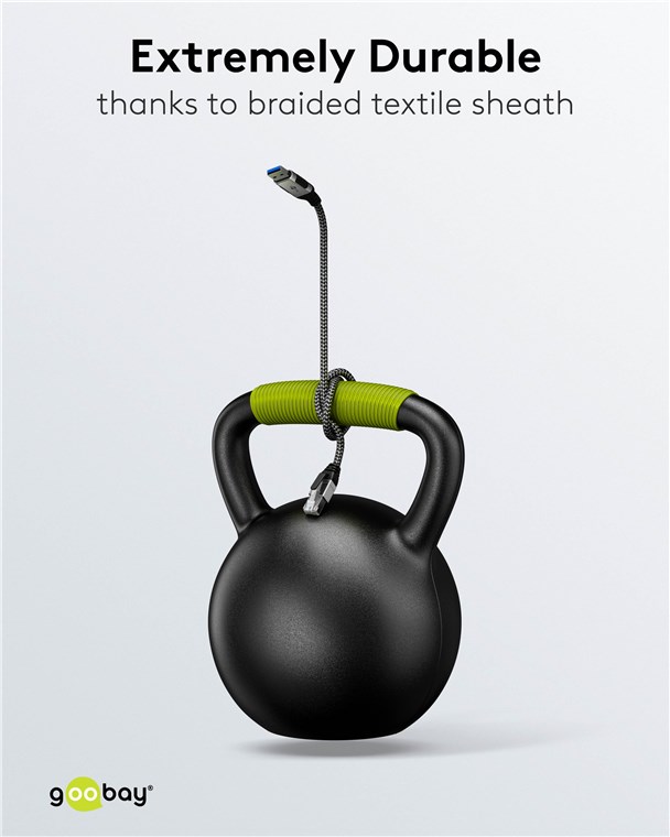 - La gaine textile tressée et résistante du câble USB a un toucher agréable et ménage les surfaces sensibles