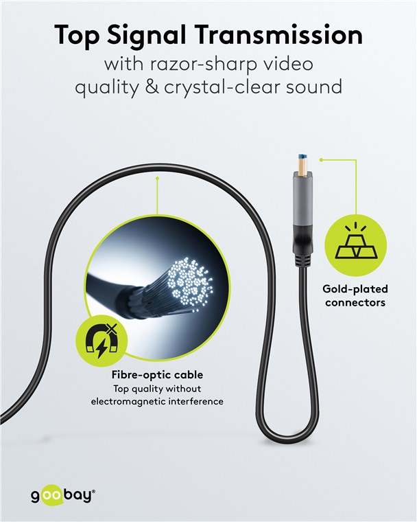 Le câble optique HDMI™ est idéal pour couvrir des distances allant jusqu'à 100 m et offre ainsi une flexibilité nettement supérieure et des taux de transmission plus élevés qu'un câble en cuivre traditionnel.