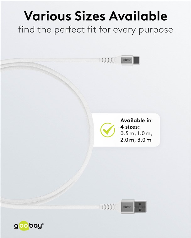 15 W, 3 A, câble de connexion élégant et extra-robuste pour les appareils dotés d'un connecteur USB-A ou USB-C™