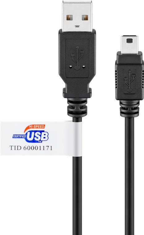 Câble USB-A vers Mini-B, Certifié, 1,8 m, noir