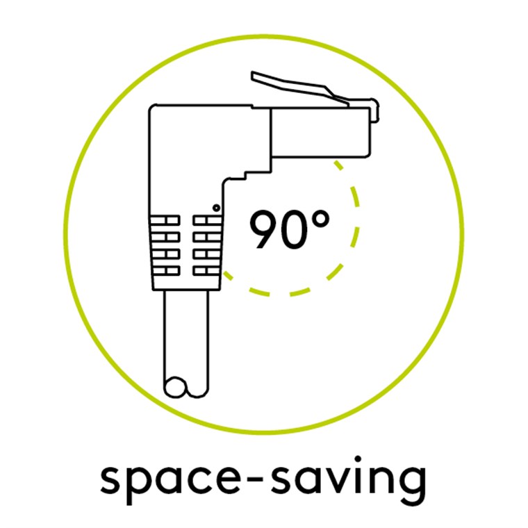 - La prise RJ45 coudée à 90° est une solution idéale pour les espaces espaces confinés.