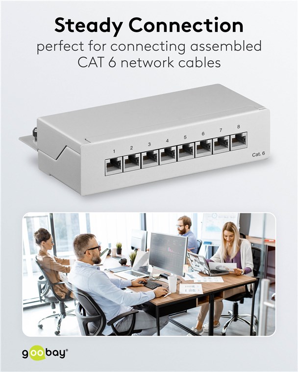 CAT 6 Panneau de Brassage Mini/Bureau, 8 Ports (1 U)