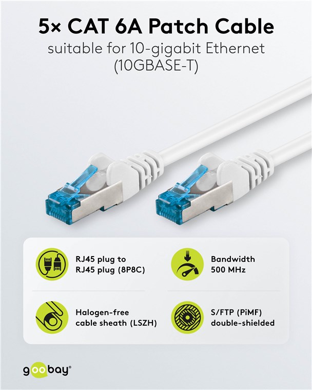 CAT 6A Câble Patch, S/FTP (PiMF), 1 m, blanc, Lot de 5