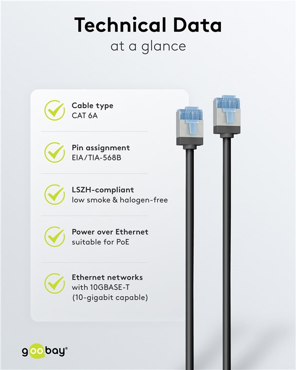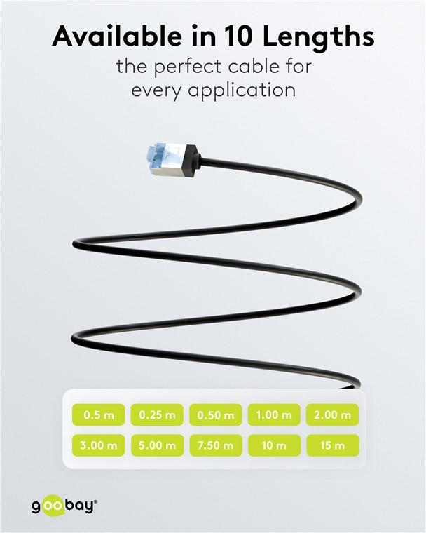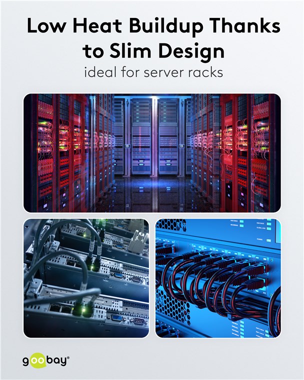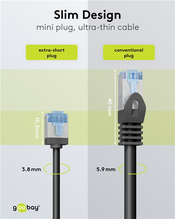 - Câble LAN super fin avec connecteurs RJ45 extra courts (15.3mm) pour un volume de câble réduit dans l'armoire du serveur ou le panneau de brassage et donc une circulation d'air optimisée