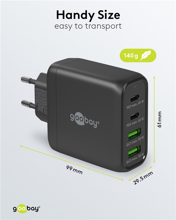 USB-C1 + USB-A2: max. 45.0 W + max. 20.0 W (Total 65.0W)