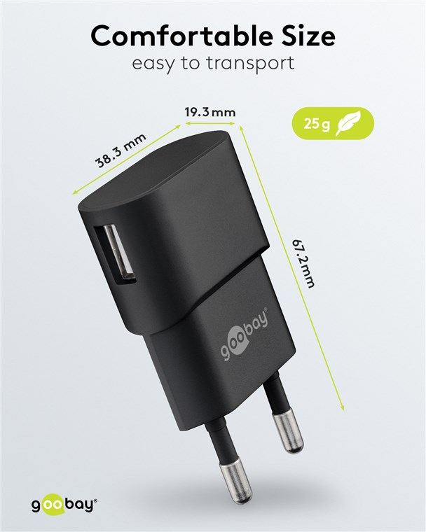 - Avec une puissance de 5 W, l'adaptateur de charge est spécialement conçu pour les petits appareils tels que les smartphones, les smartwatchs ou les écouteurs Bluetooth