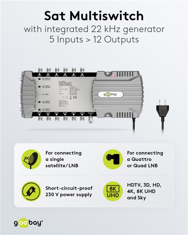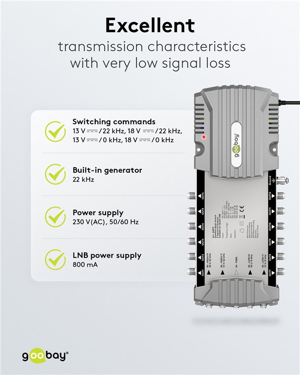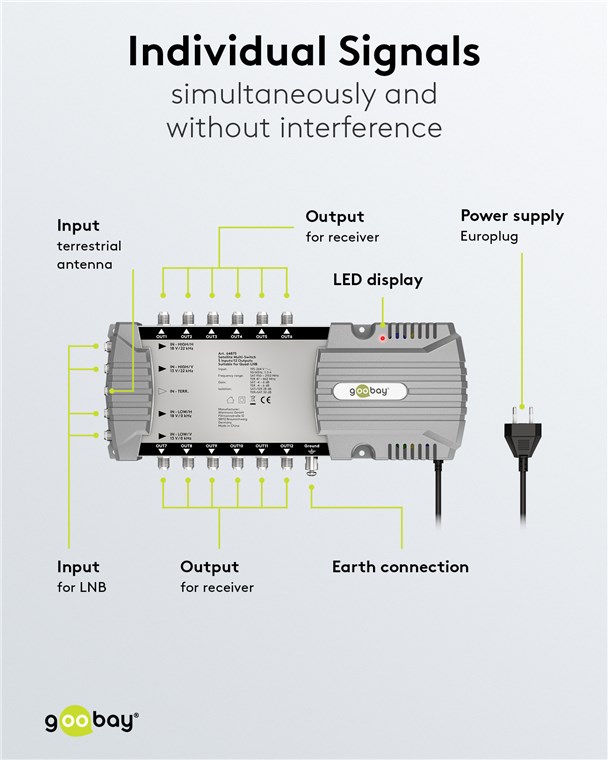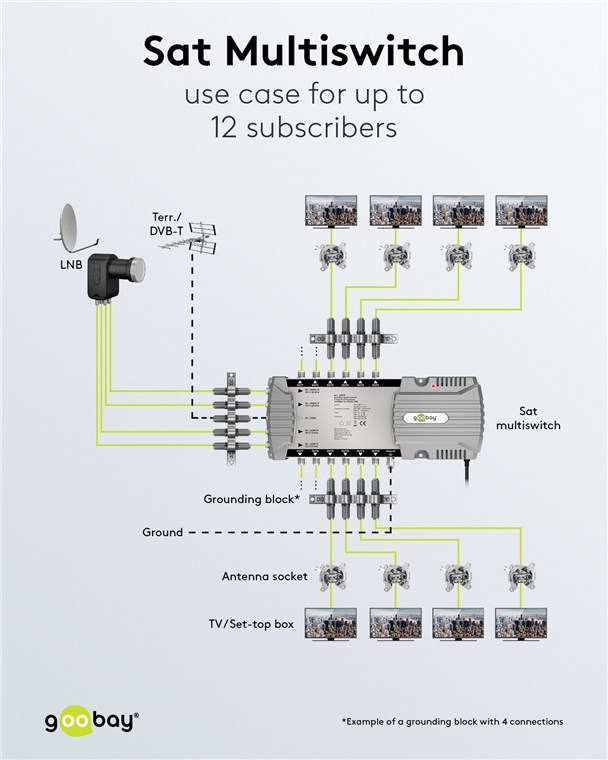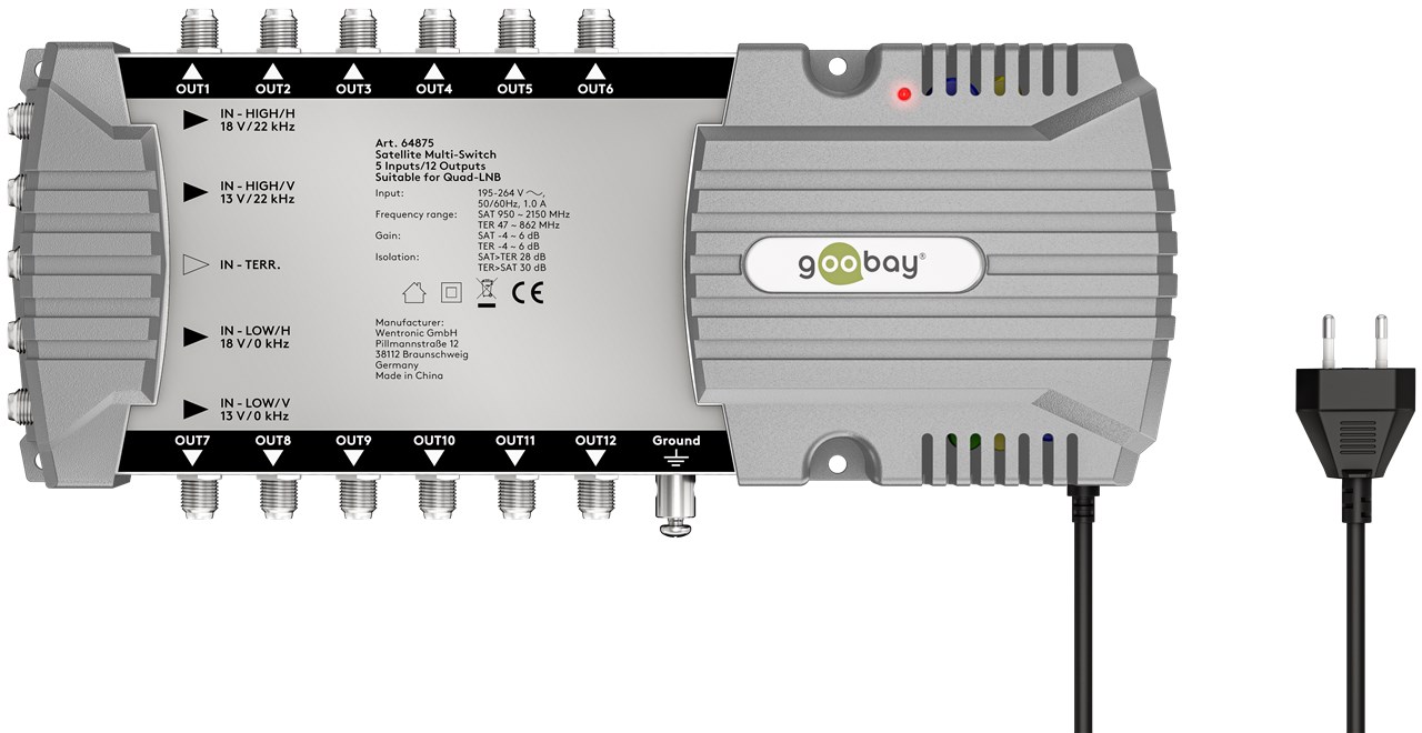 Le multiswitch est la solution pratique pour raccorder à une seule antenne parabolique plusieurs appareils pour la réception de la télévision et de la radio dans la même maison. Le commutateur veille à ce que chacun des 12 abonnés puisse profiter d'un programme individuel - pour une flexibilité maximale dans la réception de la télévision.