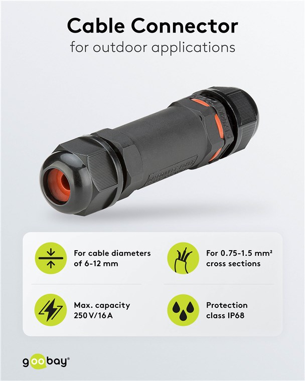 - La boîte de jonction est adaptée aux câbles d'une section de conducteur de 0,75 à 1,5 mm² ou d'un diamètre extérieur de 6 à 12 mm