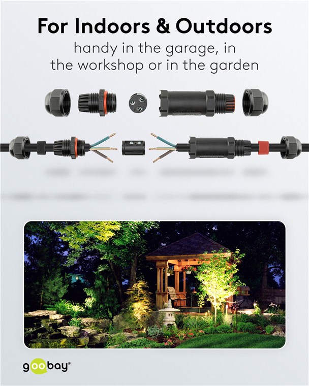 - Boîtier de derivation pour raccorder facilement des appareils techniques à l'extérieur, par ex. dans le jardin, le garage ou l'atelier de bricolage