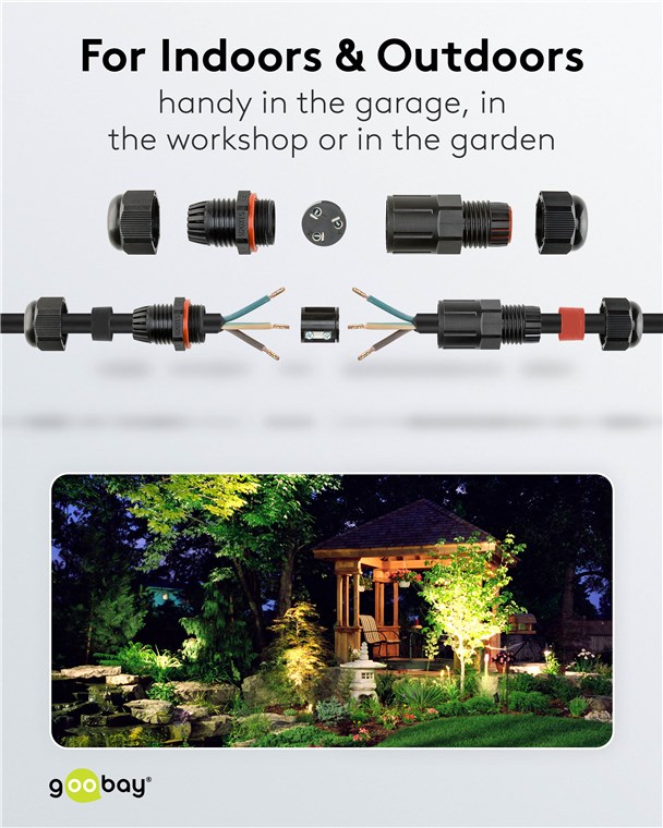 - Boîtier de derivation pour raccorder facilement des appareils techniques à l'extérieur, par ex. dans le jardin, le garage ou l'atelier de bricolage