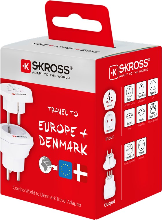 - pour le branchement des appareils depuis plus de 150 pays au Danemark et en Europe (fiche à contact de protection)