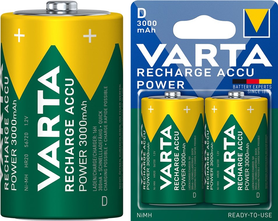 - Les batteries rechargeables VARTA 56720 sont particulièrement respectueuses de l'environnement, car elles sont rechargeables jusqu'à 1.000 fois.