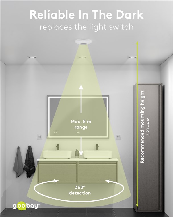 - Avec un angle de détection de 360°, idéal pour un montage encastré au plafond, hauteur d'installation : 2,20 m à 4 m