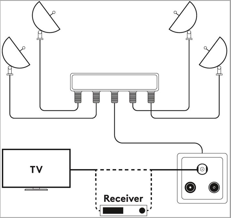- commutateur multiple à utiliser avec un récepteur satellite ou un téléviseur avec DiSEqC
