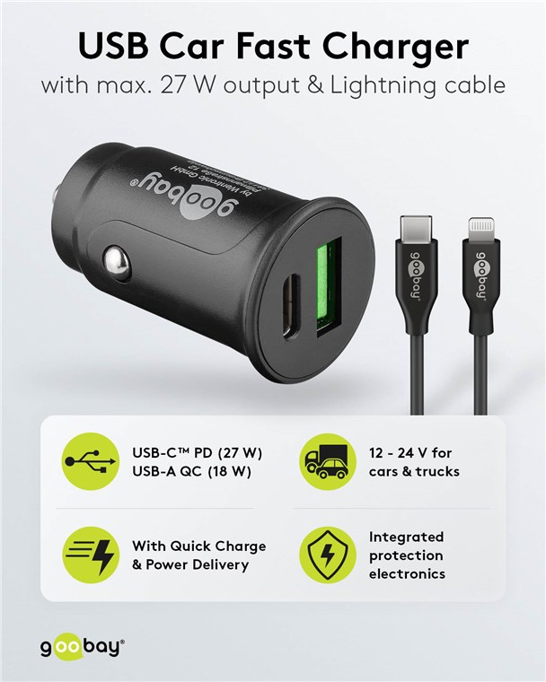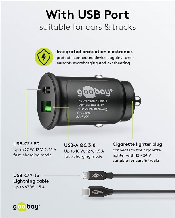 - Parfait pour la charge rapide mobile via USB-C™ avec Power Delivery (max. 27 W) et via USB-A avec Quick Charge (max. 18 W)