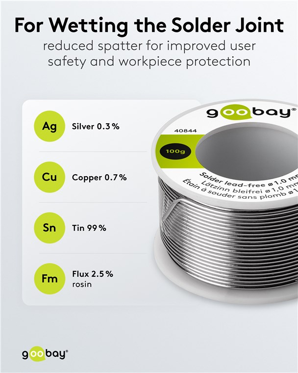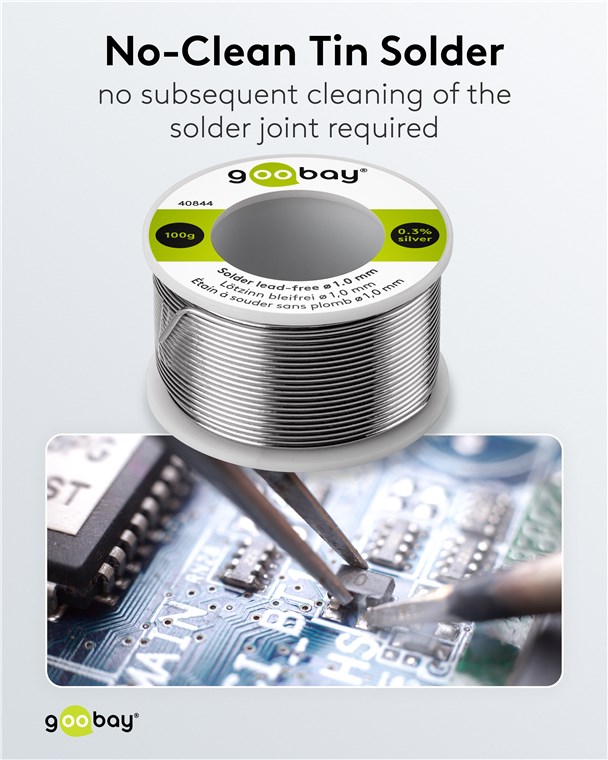 Grâce à son diamètre réduit, l'étain est facile à doser et idéal pour les travaux de précision, p. ex. pour les travaux de soudure sur des composants et appareils électriques tels que les circuits imprimés, les cartes électroniques, les CMS, les DIP, les câbles, les téléviseurs, les écouteurs ou les microphones. Le flux no-clean intégré est particulièrement pratique, car il n'est pas nécessaire de le retirer du point de soudure après le soudage.