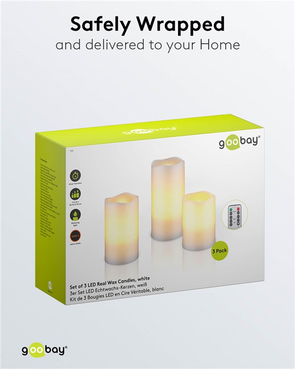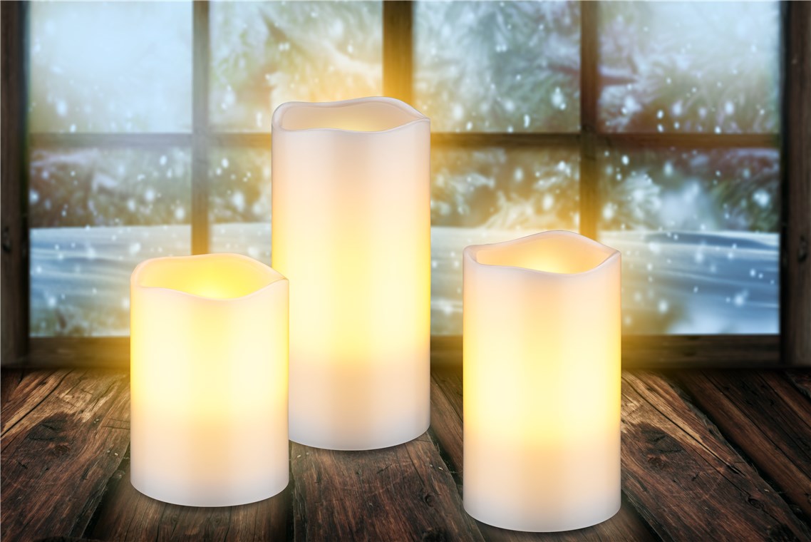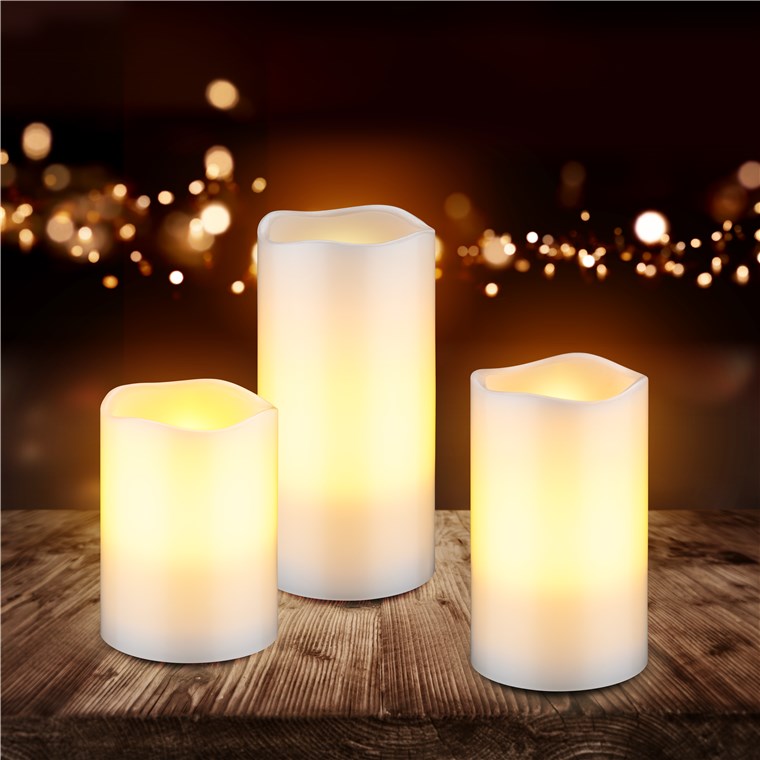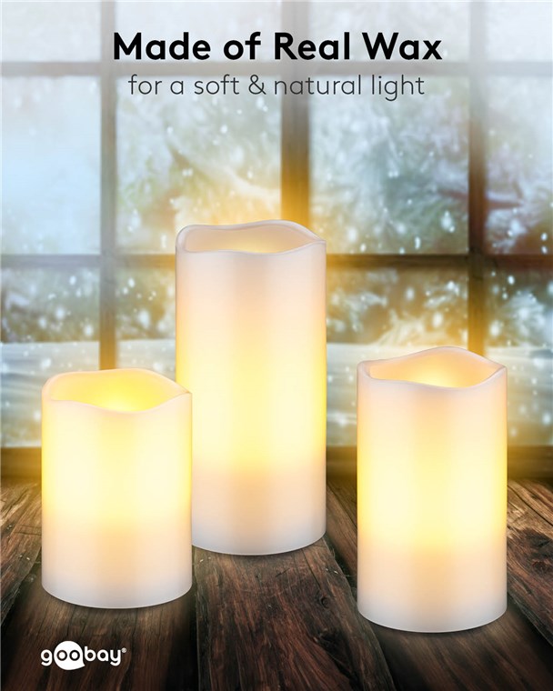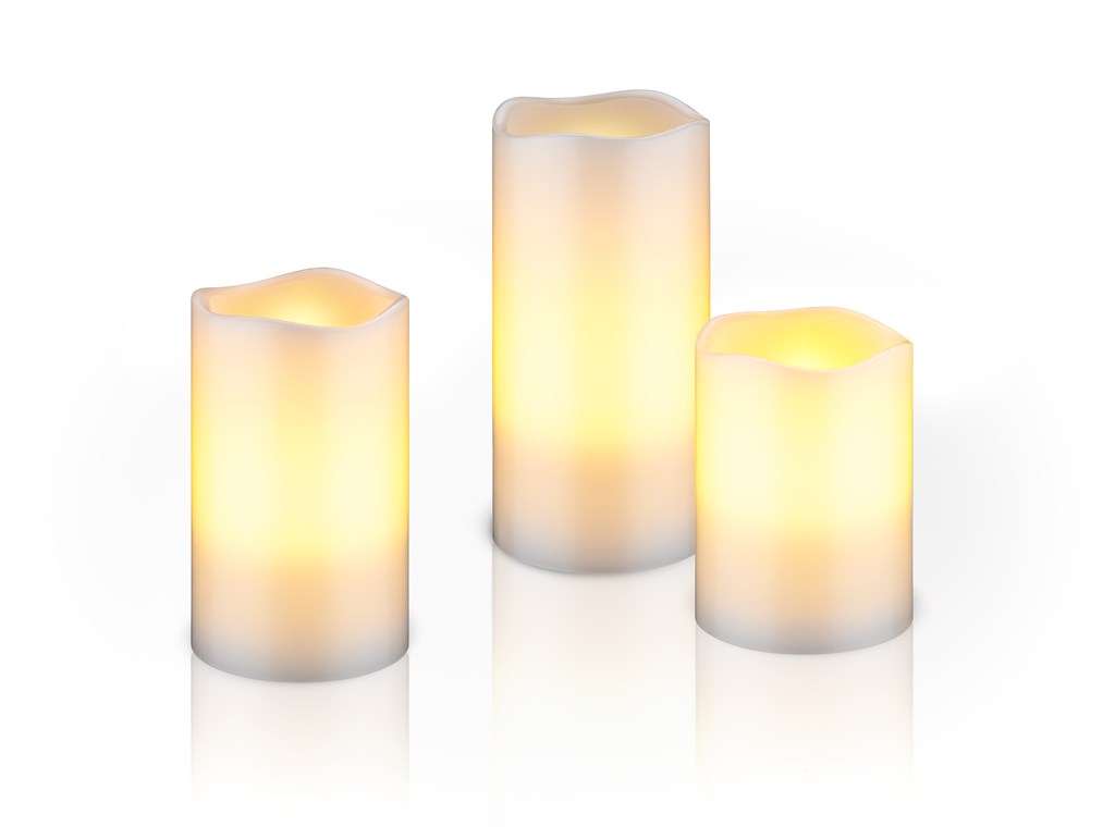 Kit de 3 Bougies LED en Cire Véritable, blanc