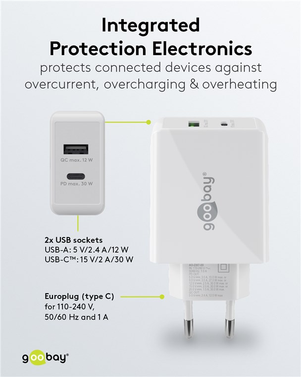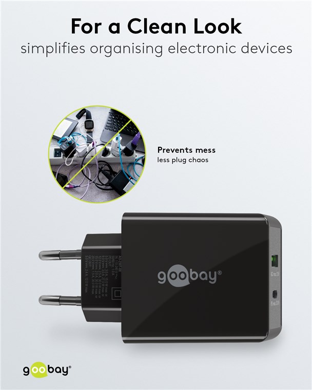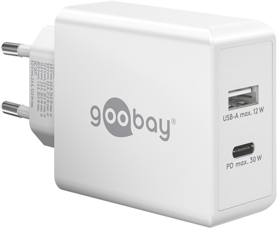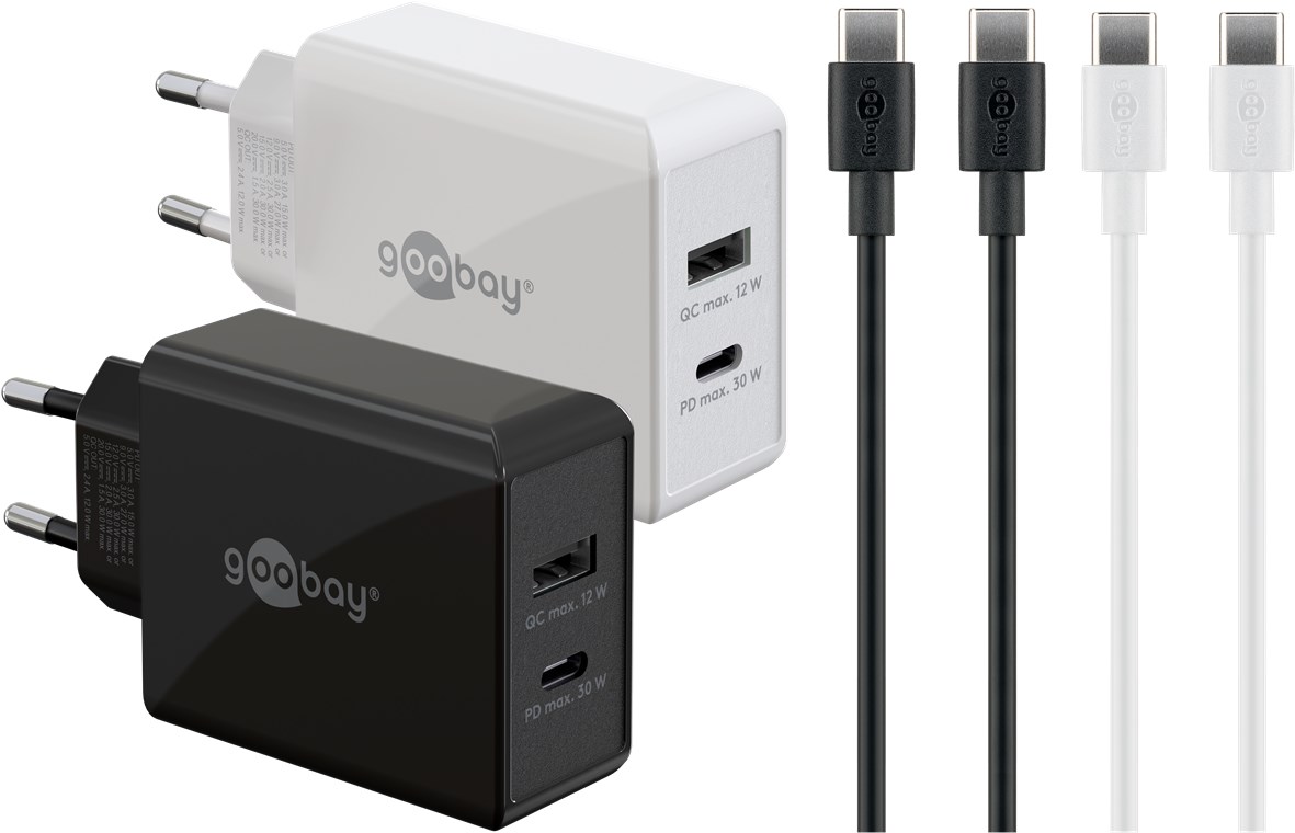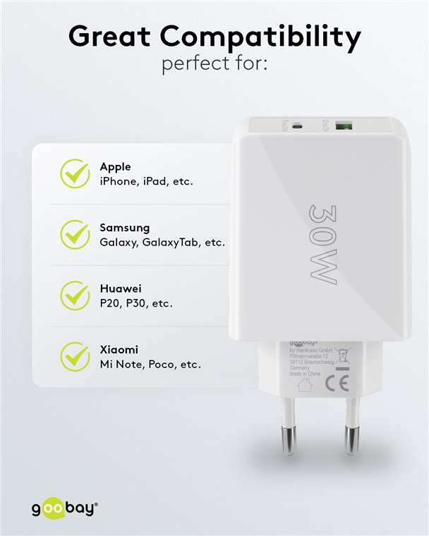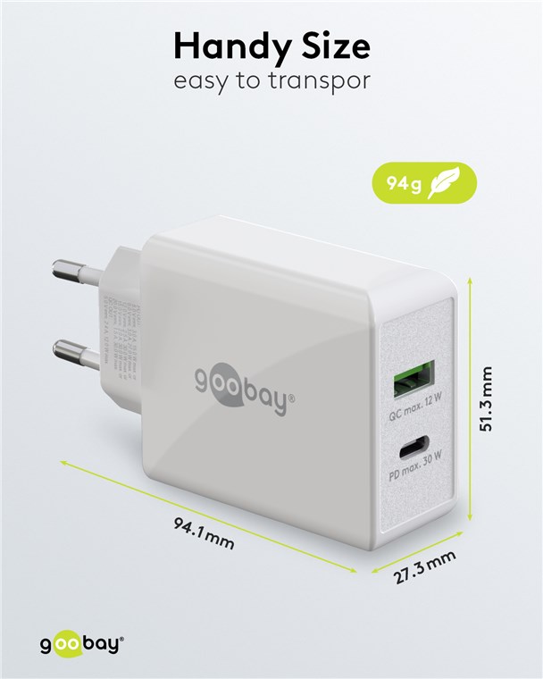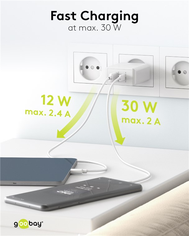 - Avec une puissance de 30 W, l'adaptateurs de charge sont spécialement conçus pour les petits appareils tels que les smartphones, les écouteurs Bluetooth, les tablettes ou les power banks