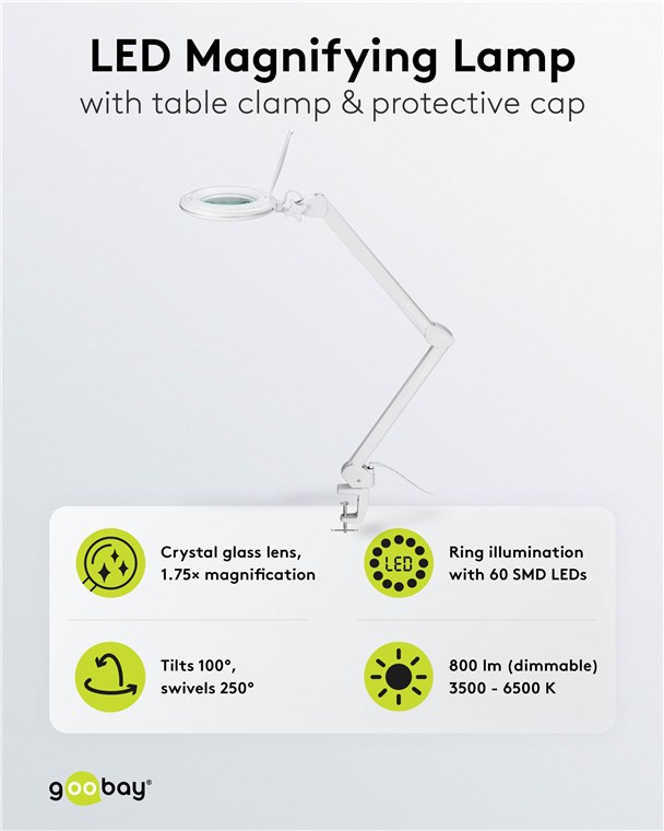 • Convient aussi idéalement comme loupe de broderie, loupe de table pour manucure, lampe de bureau, lampe à dessin ou lampe de lecture